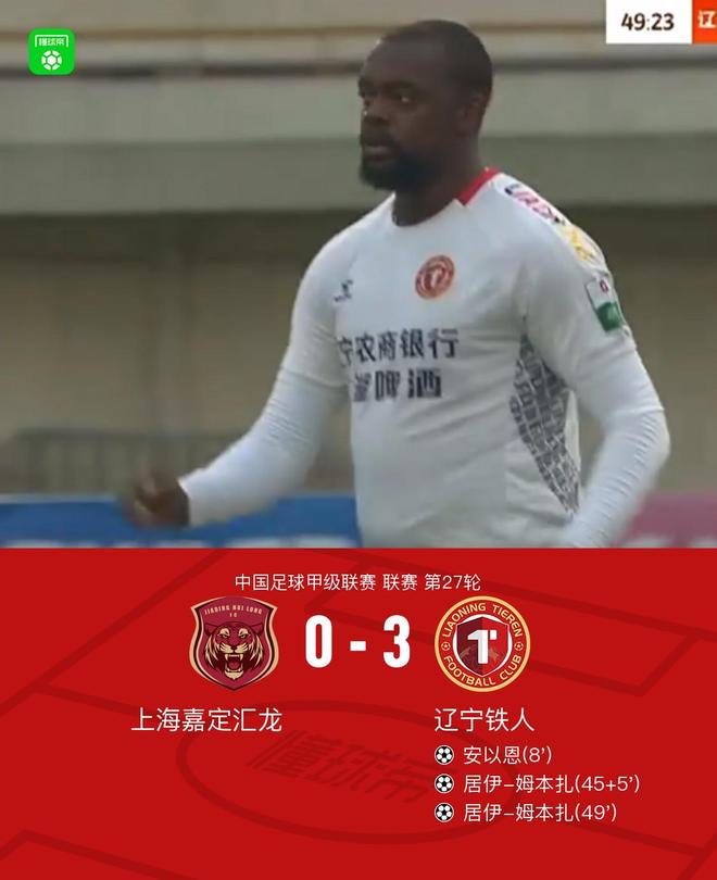 北京时间10月18日,2023年中国足球甲级联赛第27轮比赛,上海嘉定汇龙主场迎战辽宁铁人。比赛开始,辽宁铁人率先打破僵局。安影接到队友传球,冷静射门取得领先。上半场补时阶段,盖姆本扎精准射门再得一分,进一步拉大差距。即使在换边之后,辽宁铁人依然掌控着节奏。第49分钟,安影送出绝妙传球,助攻盖姆本扎破门,比分3-0。最终,辽宁铁人客场击败上海嘉定回龙,全取三分。第一个进球是在一场重要比赛的第8分钟打进的。安岩一脚大力射门得分。辽宁铁人1-0领先。接下来的比赛,姆本扎在第45分钟和第5分钟突破进球。辽宁队前锋2-0。随后,第49分钟,姆本扎门前破门。这辽宁铁人打出精彩瞬间,以3-0领先。潘参加了比赛,并在比赛第8分钟打进了第一个进球。安岩一脚大力射门得分。辽宁铁人1-0领先。第20分钟,武磊笨手笨脚停球,因身体不适滑倒倒地。第30分钟,范贝尼尔门前射门,但被对方门将挡出。第37分钟,阿布里克·穆对自己的判罚不满,在角球处踢到旗杆,吃到黄牌。第42分钟,比赛因角球杆折断而暂停。工作人员在45分钟和5分钟后恢复工作。姆本扎以2-0力克辽宁铁人,随后进球再次获胜。第48分钟,武磊面对门将射门,第4分钟皮球击中横梁。 Vo他们在第9分钟再次获胜。姆本扎在门前进球。辽宁铁人3-0领先。第67分钟被判越位e.安影门前优雅的后脚跟进球被吹了。第83分钟,桂季涵斜射,但皮球被扑出。他们在第85分钟错失了一次机会。恭子面对门将,但他的射门被扑出。技术统计。
